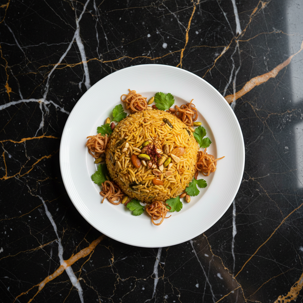A fragrant and aromatic rice dish, this Emirati specialty is infused with the delicate flavors of saffron and cardamom, and topped with toasted nuts for a delightful crunch. It's often served as a side dish or a light main course.