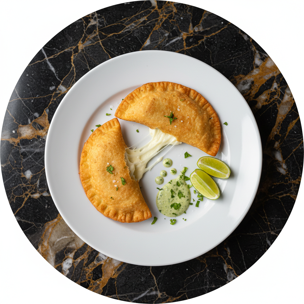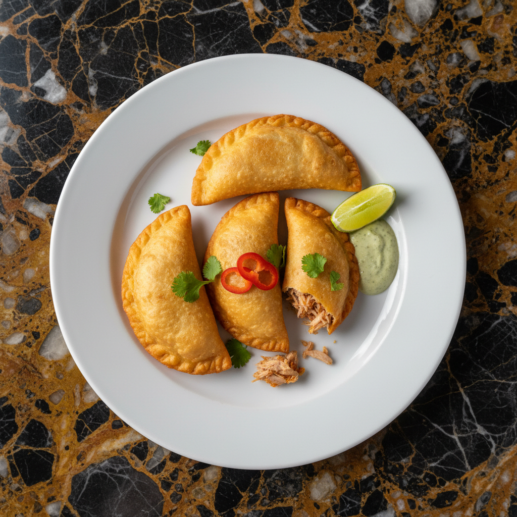 Traditional Venezuelan empanadas filled with a flavorful shredded shark (cazรณn) and vegetable mixture, encased in a crispy corn dough. A beloved coastal specialty, particularly from Margarita Island.