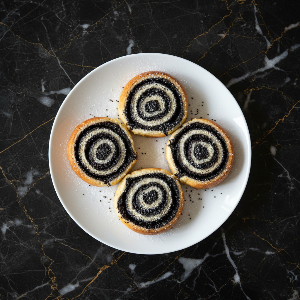 Sweet, spiral-shaped rolls filled with a rich poppy seed paste. These fragrant pastries are a popular treat, especially during holidays and celebrations, offering a delightful balance of soft dough and flavorful filling.