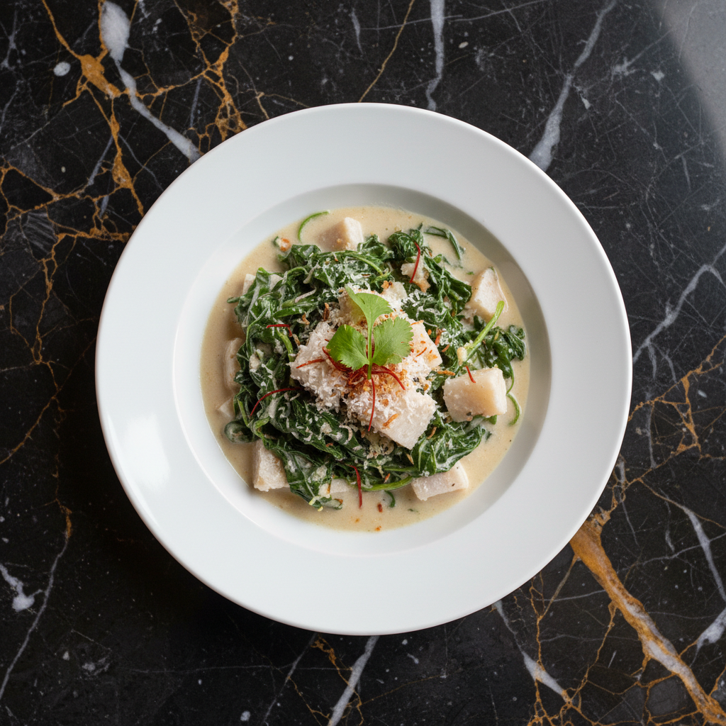 A comforting and nutritious stew featuring tender Aibika leaves and starchy taro, simmered in a rich coconut milk broth. This dish is a staple in many coastal regions of Papua New Guinea, offering a taste of traditional home cooking.