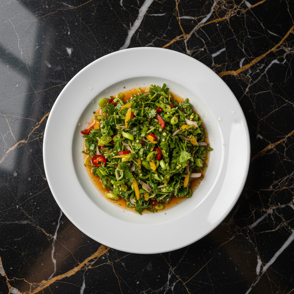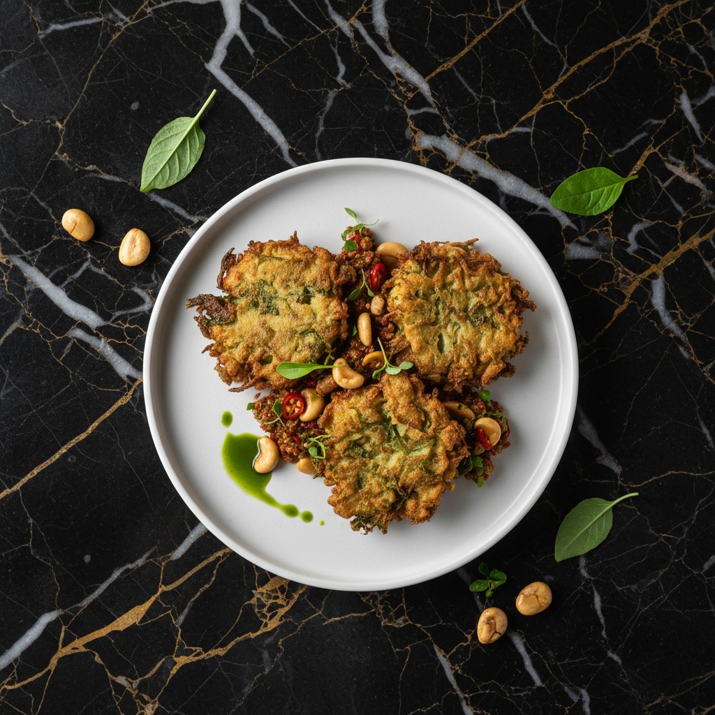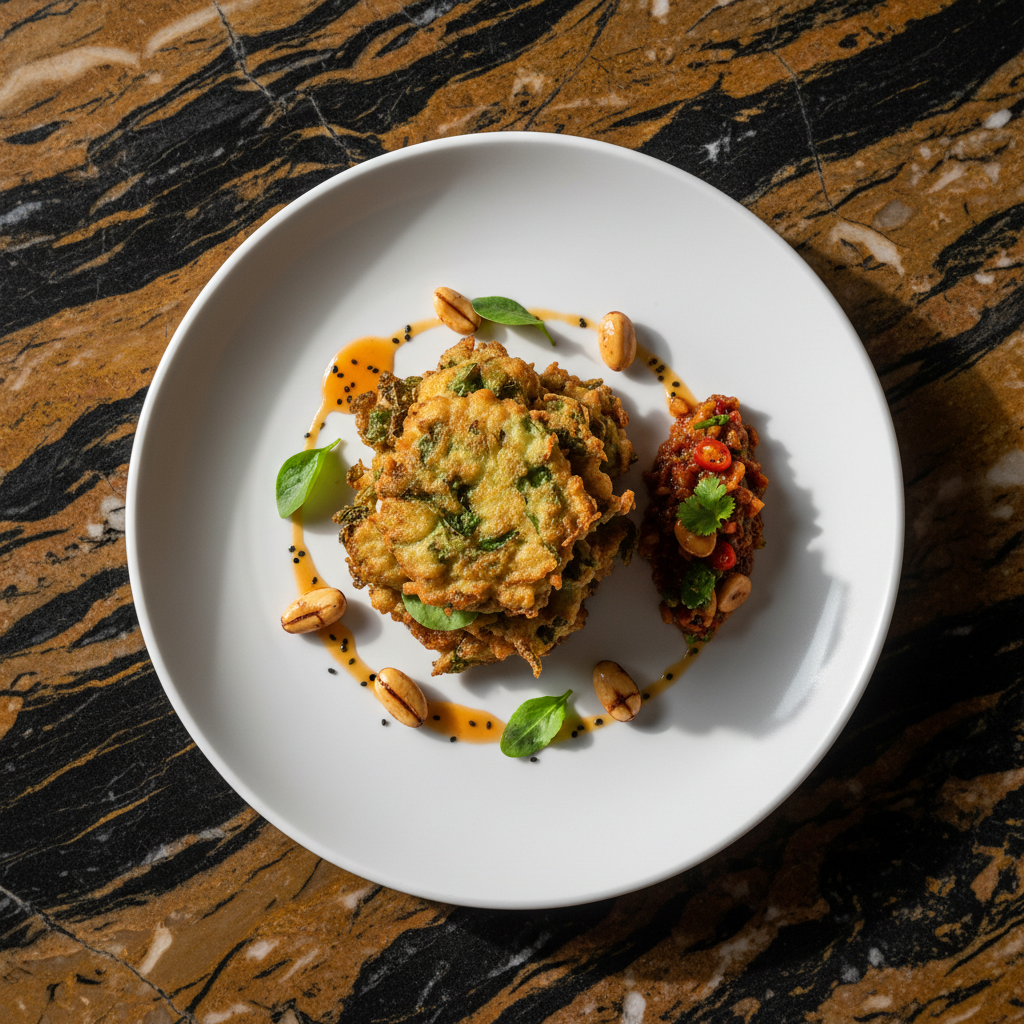 Crispy, savory fritters made from the nutritious Aibika leaf, complemented by a sweet and tangy relish featuring the unique Galip nut. This dish highlights the use of indigenous ingredients in a modern culinary context.
