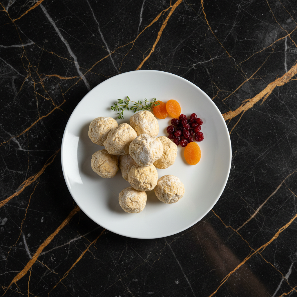 A traditional Mongolian snack made from dried curd of fermented mare's milk (airag). These cheese balls are a unique and tangy treat, often enjoyed as a source of sustenance and calcium, especially during long journeys or in nomadic settings.