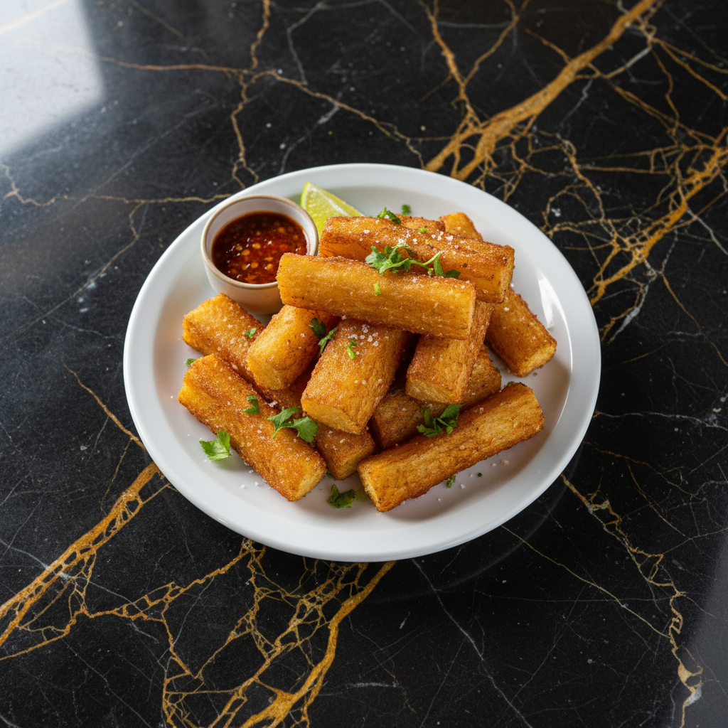 Aipim frito, also known as fried cassava or yuca fries, are a popular Brazilian street food and side dish. These fries are uniquely prepared by boiling the cassava until just tender before frying, resulting in a wonderfully crispy exterior and a fluffy, creamy interior, often considered superior to potato fries.