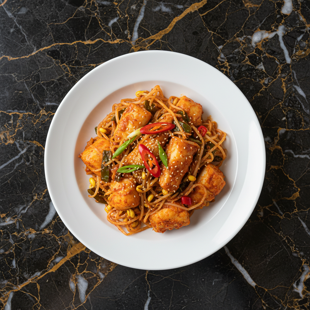 A fiery and flavorful Korean stew featuring tender monkfish and crunchy soybean sprouts, coated in a rich, spicy sauce. This dish, a specialty of Masan, is known for its bold flavors and satisfying texture.