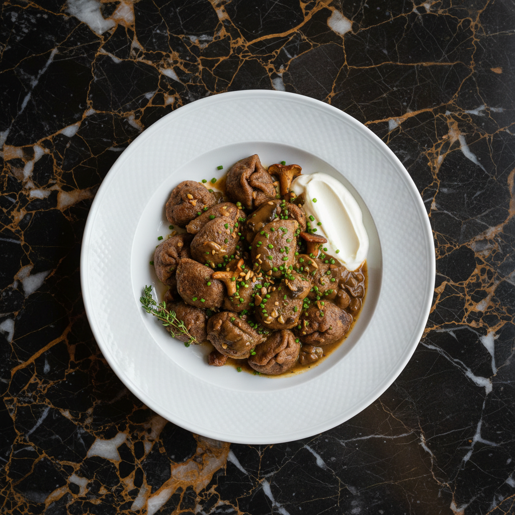Ajdovi Krapi are buckwheat fritters, a rustic and hearty dish originating from the mountainous regions of Slovenia, particularly Carinthia (Koroška). They are typically served as a savory main course or a substantial side dish, often accompanied by sour cream or a mushroom sauce.