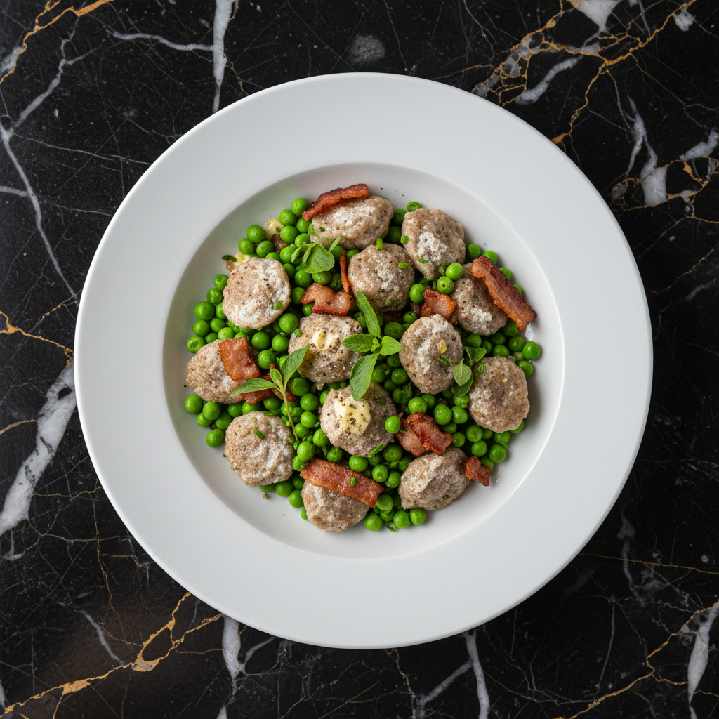 Hearty and rustic buckwheat dumplings, often served with a savory mixture of peas and crispy bacon. This dish is a comforting staple, showcasing the use of buckwheat, a common grain in Slovenian cuisine.