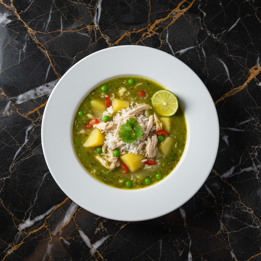 A vibrant and flavorful Peruvian green chicken soup, celebrated for its rich cilantro base and comforting texture. Often considered a potent hangover cure and a beloved comfort food.