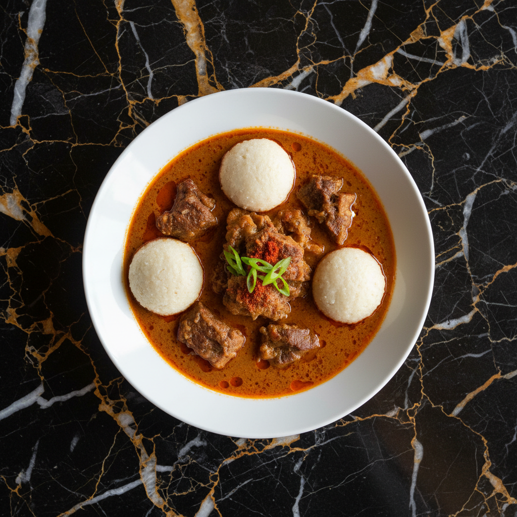 Abenkwan, meaning 'palm nut soup' in the Akan language, is a rich, creamy, and deeply flavorful West African soup. Made from palm fruit concentrate, it's a celebratory dish often prepared with various meats and served with fufu or omo tuo.