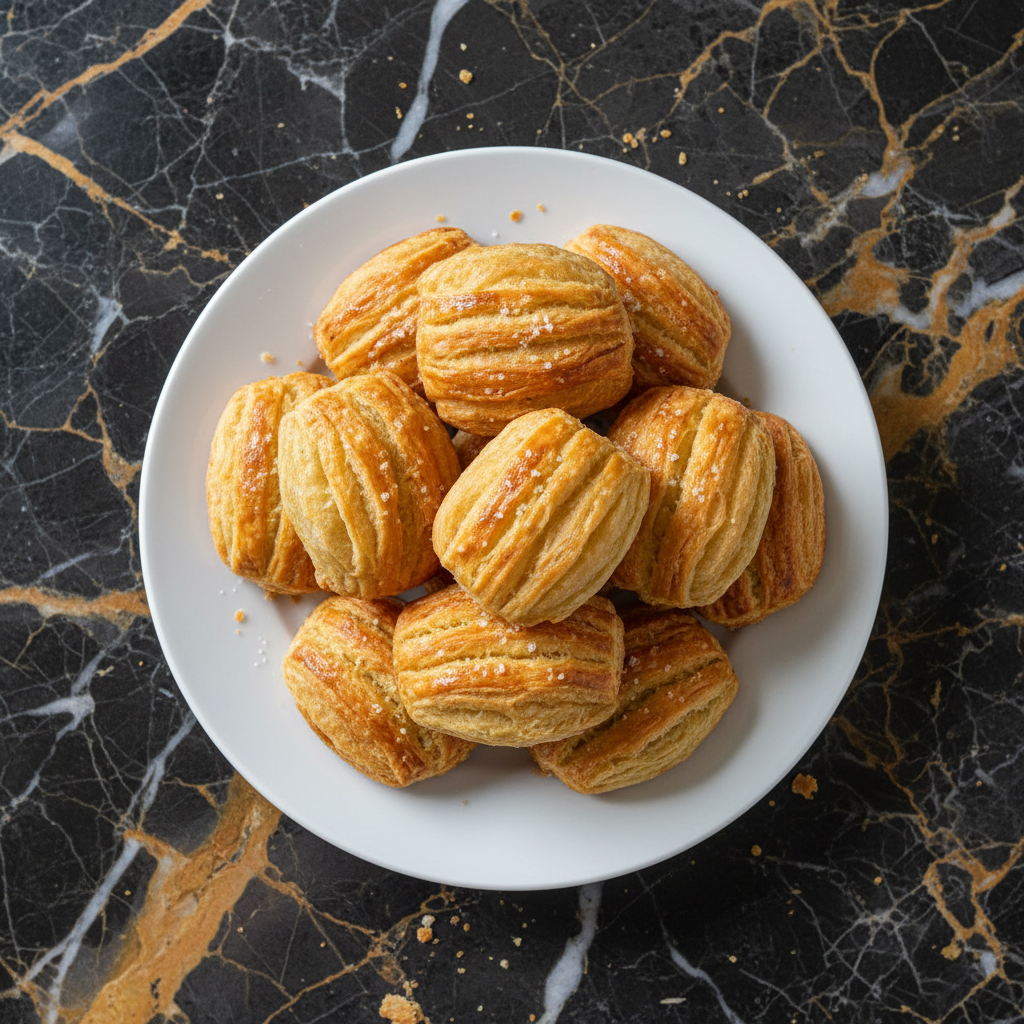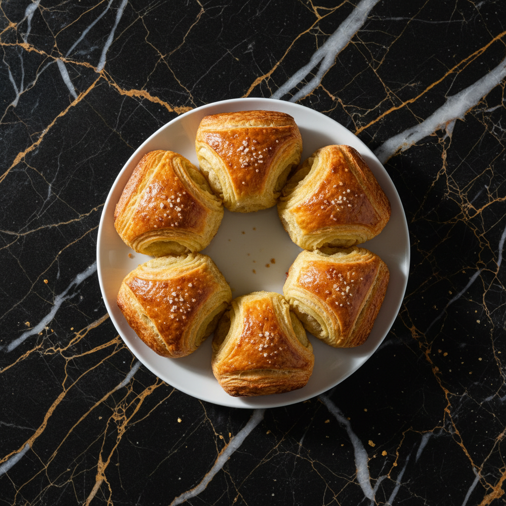 Aberdeen Butteries, also known as Rowies, are a unique and savory pastry originating from Aberdeen, Scotland. They are characterized by their flaky, layered texture, achieved through a laminated dough process similar to croissants, but with a distinctively richer, almost greasy, and saltier flavor profile. Traditionally enjoyed for breakfast or as a hearty snack, they offer a satisfyingly dense yet tender bite.
