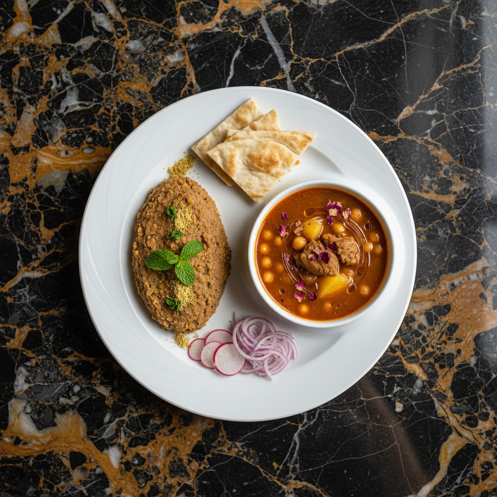 A hearty and ancient Persian comfort food, Abgoosht is a rich lamb and chickpea stew traditionally served in two courses: first the flavorful broth as a soup, followed by the mashed solids as a thick, savory paste, often enjoyed with flatbread.