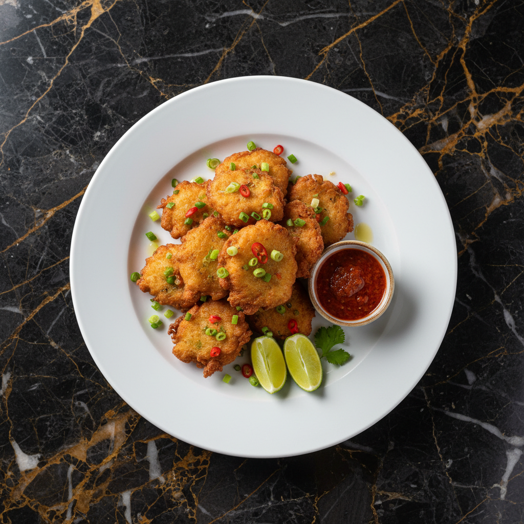 Mauritian salt cod fritters - crispy fried balls of salt cod batter. A popular Creole beach snack with distinct Indian Ocean influence.