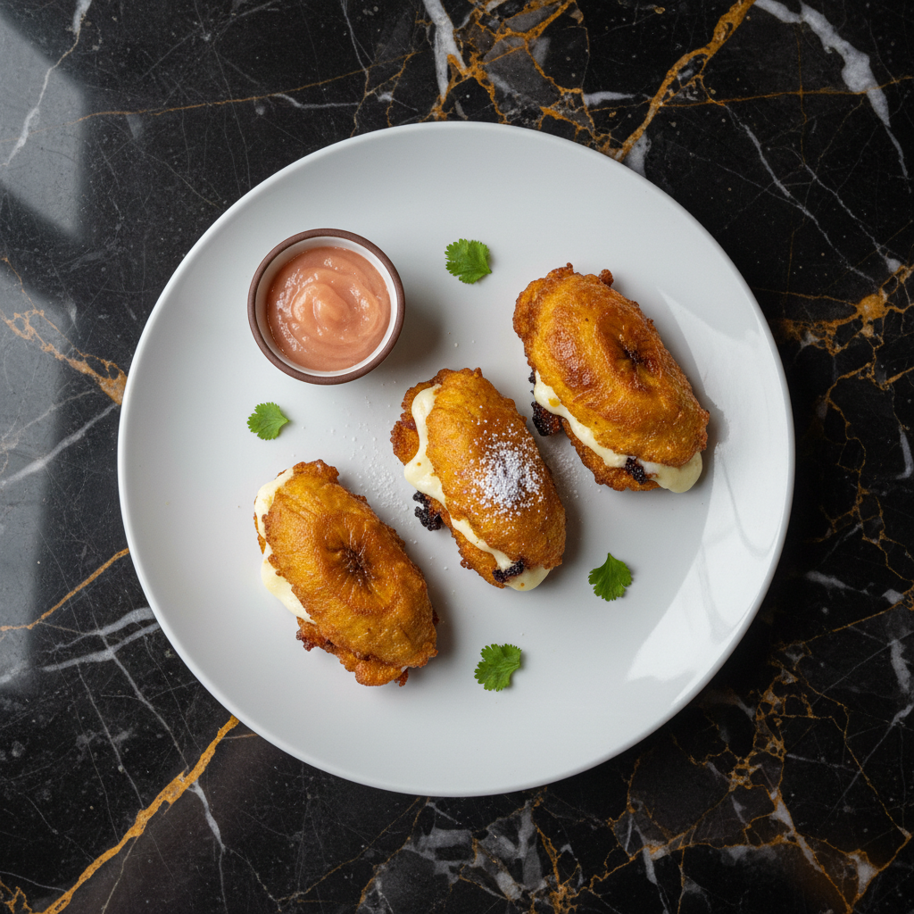 A popular Colombian street food from the Valle del Cauca region, these are sweet, ripe plantains stuffed with salty cheese, coated in a light batter, and fried until golden and crispy. They offer a delightful balance of sweet and savory flavors.