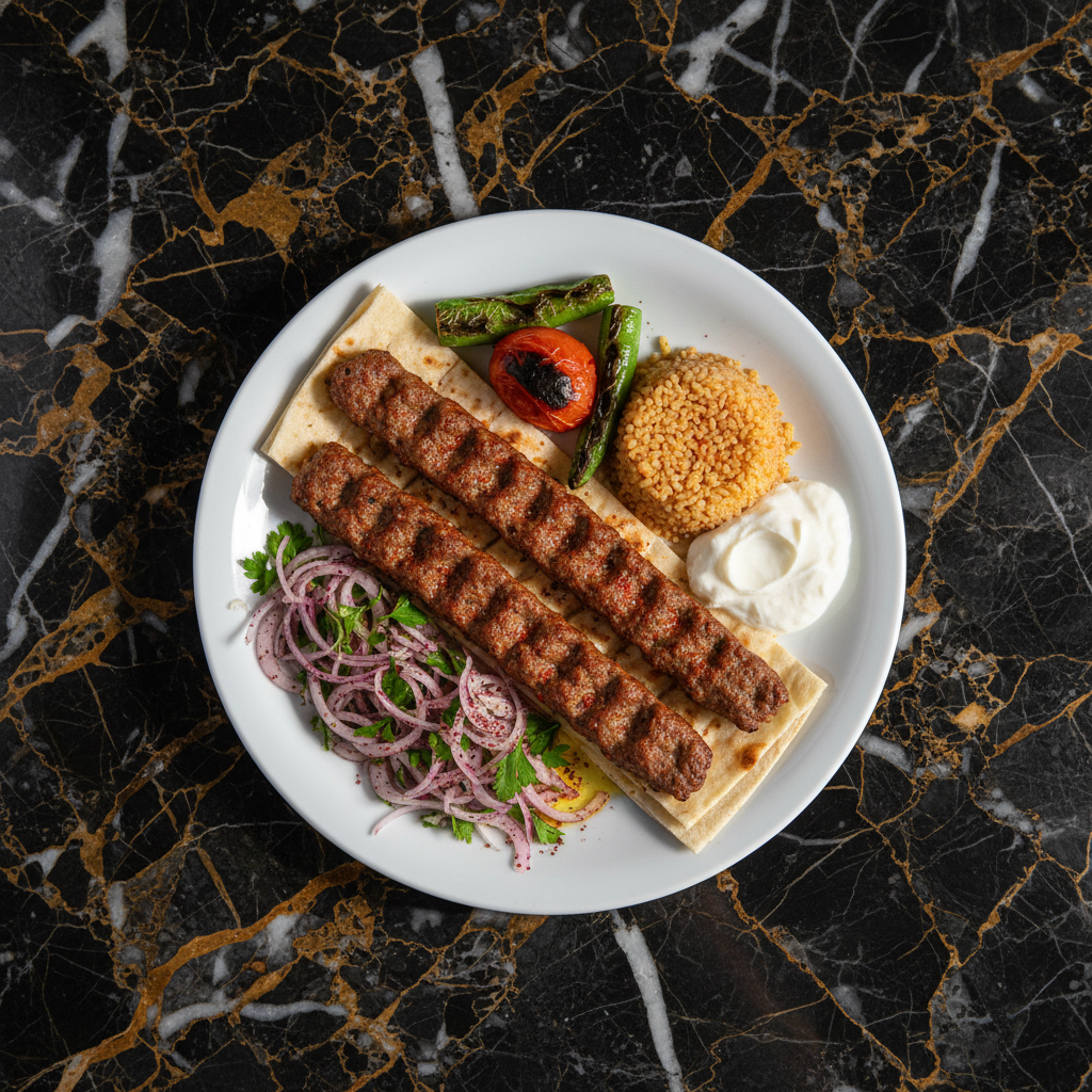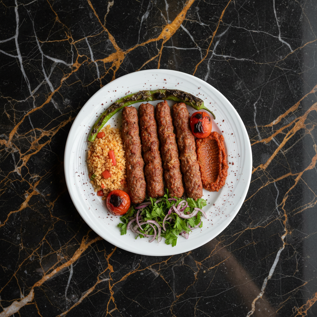 A traditional Turkish specialty from Adana, this spicy lamb kebab is made with hand-minced lamb, rich lamb tail fat, and a generous amount of chili. It's known for its fiery kick and succulent texture.