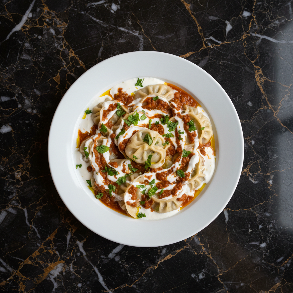 Delicate dumplings filled with leeks and herbs, typically served with a garlic-yogurt sauce, a lentil-tomato sauce, and a sprinkle of mint. A beloved Afghan comfort food.