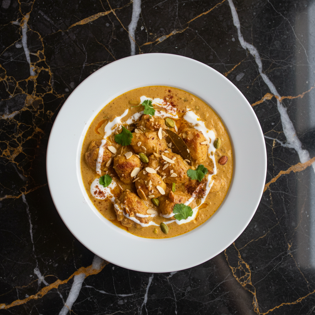 A rich and aromatic chicken curry, Afghan Chicken Korma is a flavorful dish often prepared for special occasions. It features tender chicken pieces simmered in a creamy, spiced tomato-based sauce with yogurt, nuts, and fragrant spices.