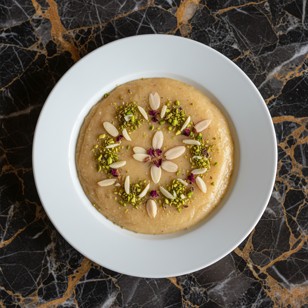 A delicate and creamy milk pudding, often flavored with cardamom and rosewater, and garnished with pistachios and almonds. It's a popular dessert for celebrations and special occasions.