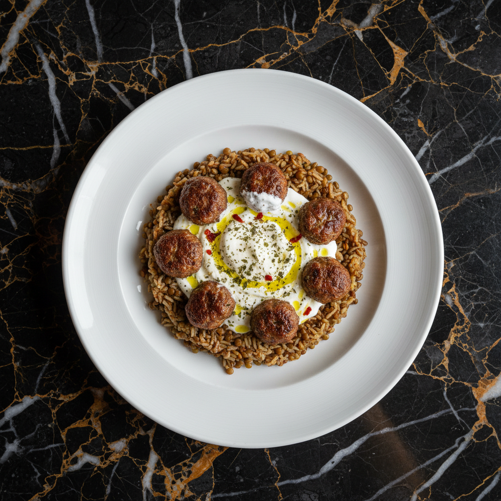 A hearty and flavorful dish featuring tender lamb meatballs simmered in a fragrant rice and yogurt sauce, often considered a comforting family meal.