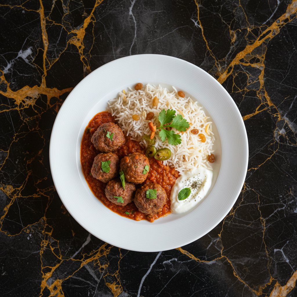 A flavorful dish of lamb meatballs simmered in a rich tomato and onion sauce, traditionally served with fluffy basmati rice. This comforting meal highlights the savory depth of Afghan cuisine.