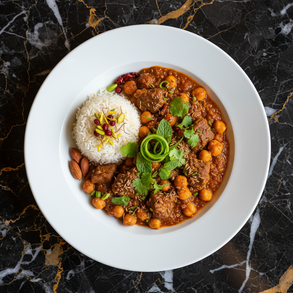 A hearty and flavorful curry featuring tender lamb, chickpeas, and aromatic spices, simmered in a rich tomato-based sauce. This dish is a comforting staple in Afghan cuisine, often served with rice.