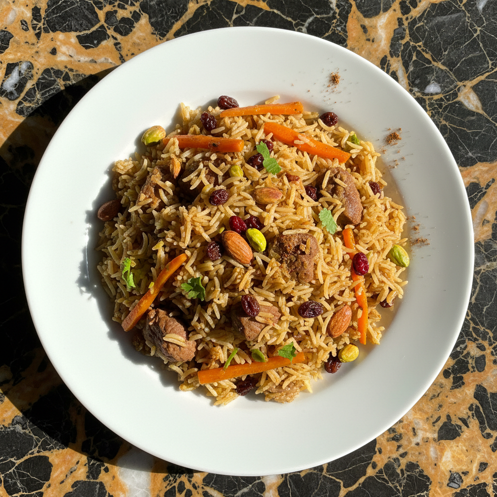 Afghan Lamb and Rice Pilaf with Carrots and Raisins