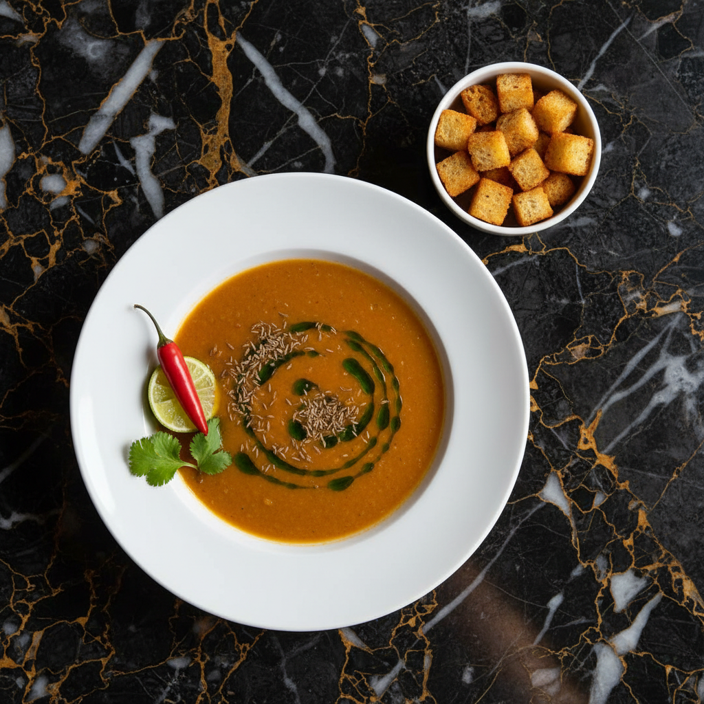 A simple yet deeply comforting Egyptian red lentil soup, flavored with aromatic cumin and brightened with fresh lemon. This dish, known as 'Ads' in Egypt, is a staple for its nourishing qualities and ease of preparation.