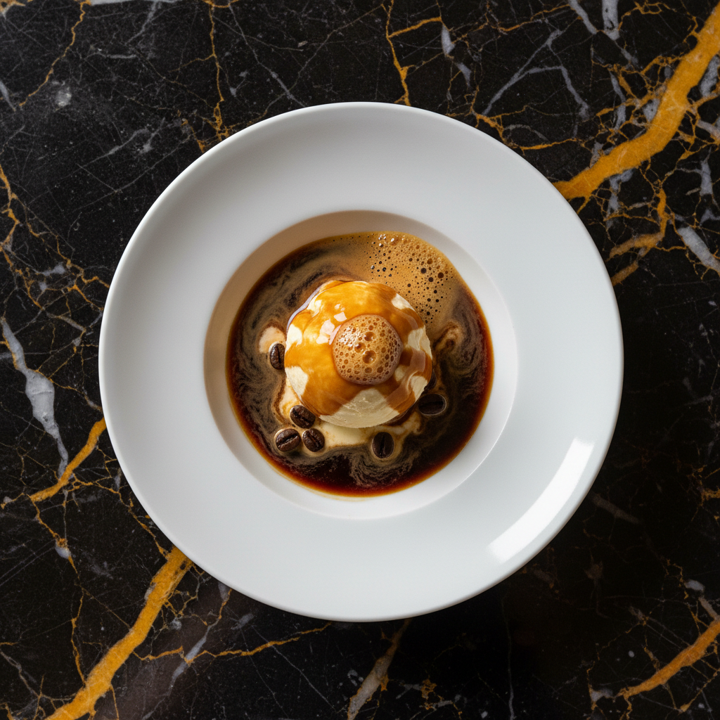 A simple yet elegant Italian dessert where a scoop of cold vanilla gelato is 'drowned' in a shot of hot, freshly brewed espresso. The contrast of hot and cold, bitter and sweet, creates a delightful sensory experience.