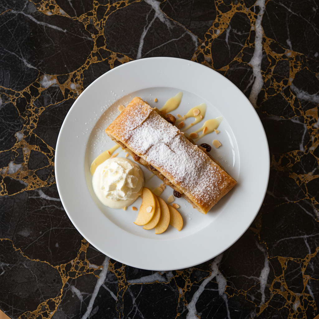 A classic German Apfelstrudel featuring a delicate, paper-thin pastry encasing a warm, spiced apple filling. This recipe requires patience and a gentle touch for the dough, but the result is a truly rewarding dessert.