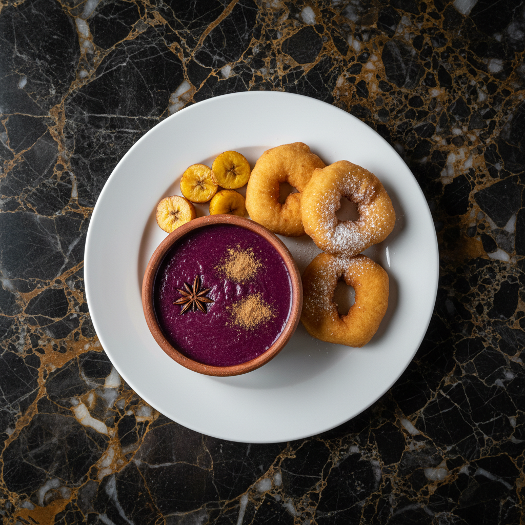 Api Api is a traditional Bolivian drink, particularly popular in the eastern regions like Santa Cruz. It's a sweet, thick, and often slightly tart beverage made from a base of corn (usually purple corn, but white corn can also be used), flavored with spices, and sometimes served with a side of 'buñuelos' (fried dough fritters).