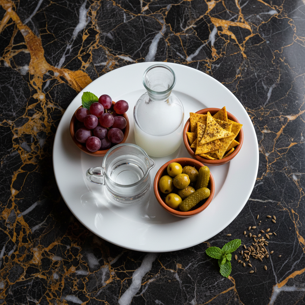 Arak Esmer is a traditional anise-flavored distilled spirit from Syria, known for its clear appearance and the characteristic milky white cloudiness when mixed with water. It's typically made from fermented grapes and aniseed, then distilled multiple times.