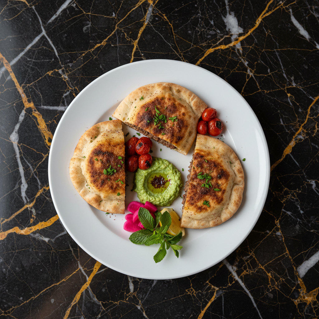 A classic Lebanese street food, Arayes are pita breads stuffed with a flavorful mixture of spiced ground lamb and then grilled until golden brown and crispy. The result is a delicious, savory pocket with a satisfying crunch.
