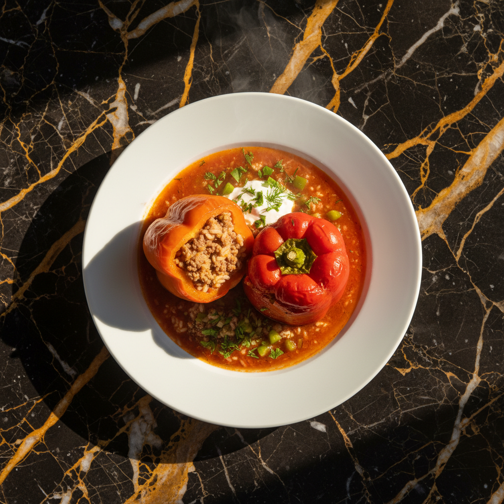 Ardei Umpluți are a beloved Romanian dish of bell peppers stuffed with a flavorful mixture of ground meat (typically pork and beef), rice, and aromatic vegetables, then simmered in a rich tomato-based sauce. These peppers are tender and hearty, offering a complete and satisfying meal.