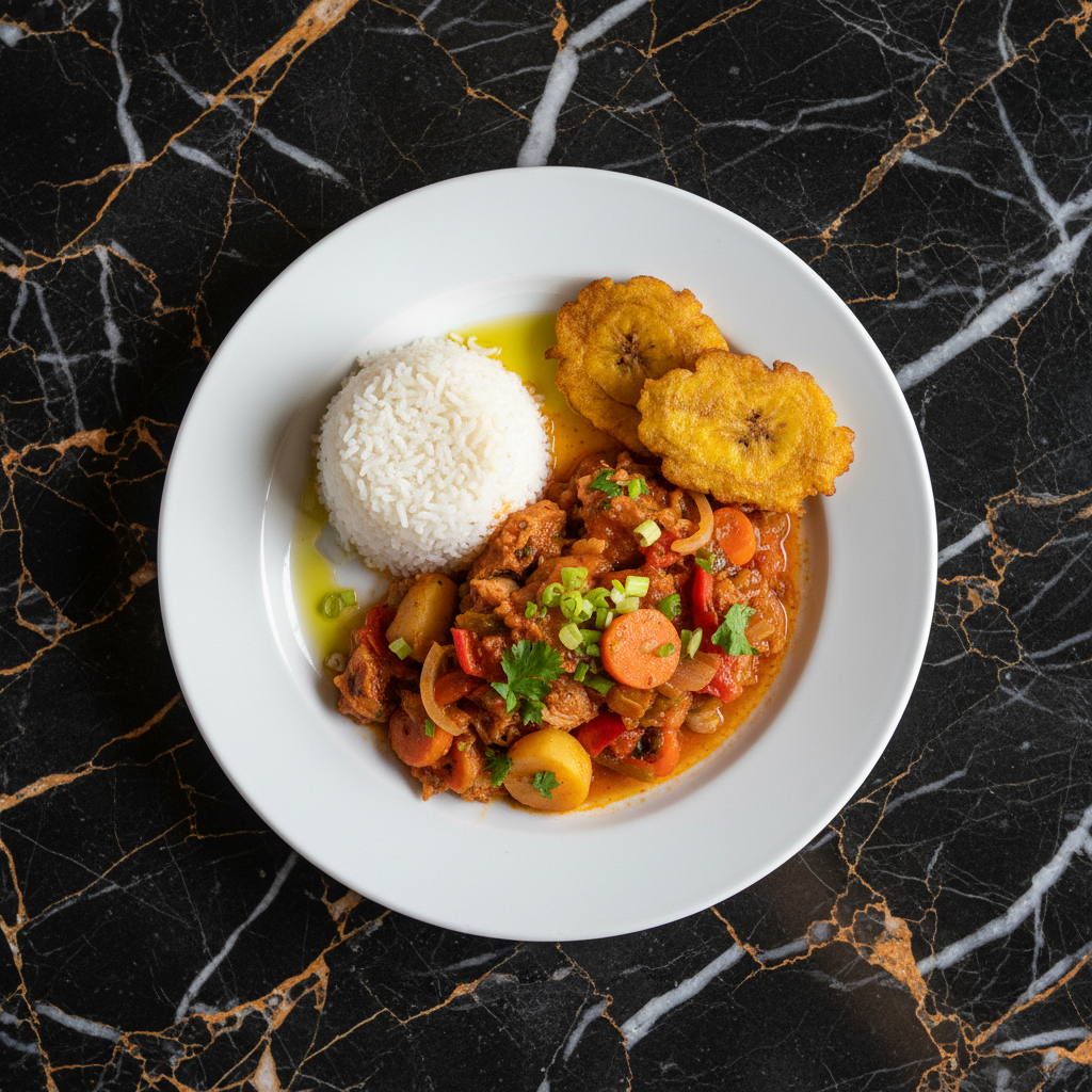 A flavorful stewed herring dish featuring tender fish simmered with a medley of vegetables in a savory tomato-based sauce. It's a comforting and traditional Dominican preparation, often served with rice or fried plantains.